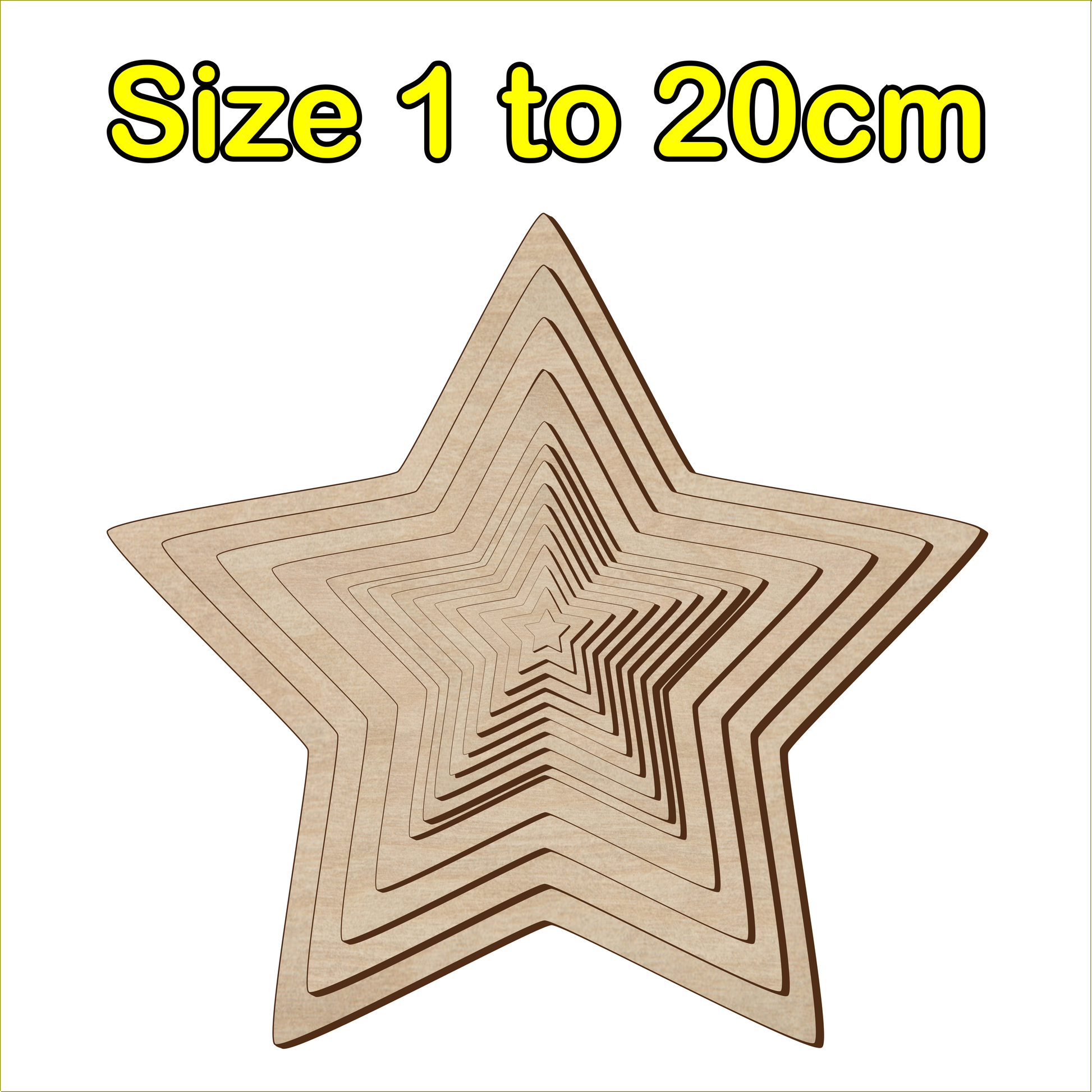 1cm to 20cm Star Shape - 3mm Baltic Birch Plywood