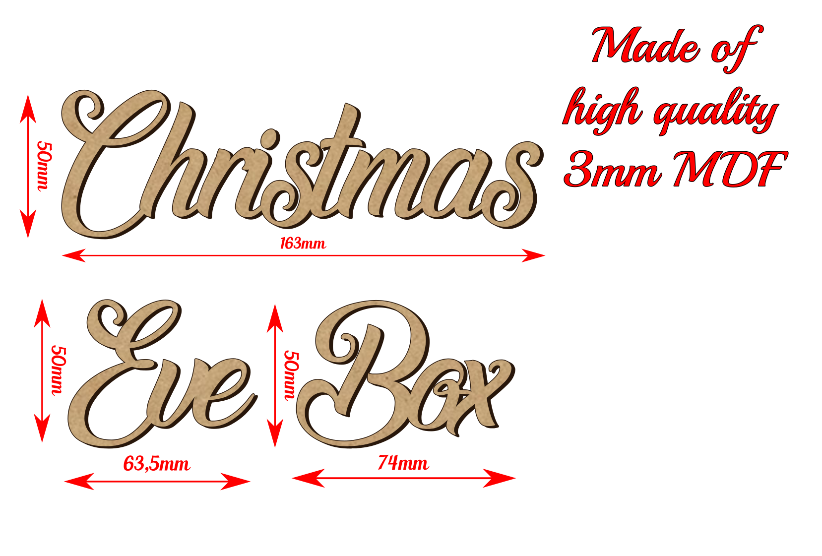Christmas Eve Box Wooden Word Inscription - 3mm MDF