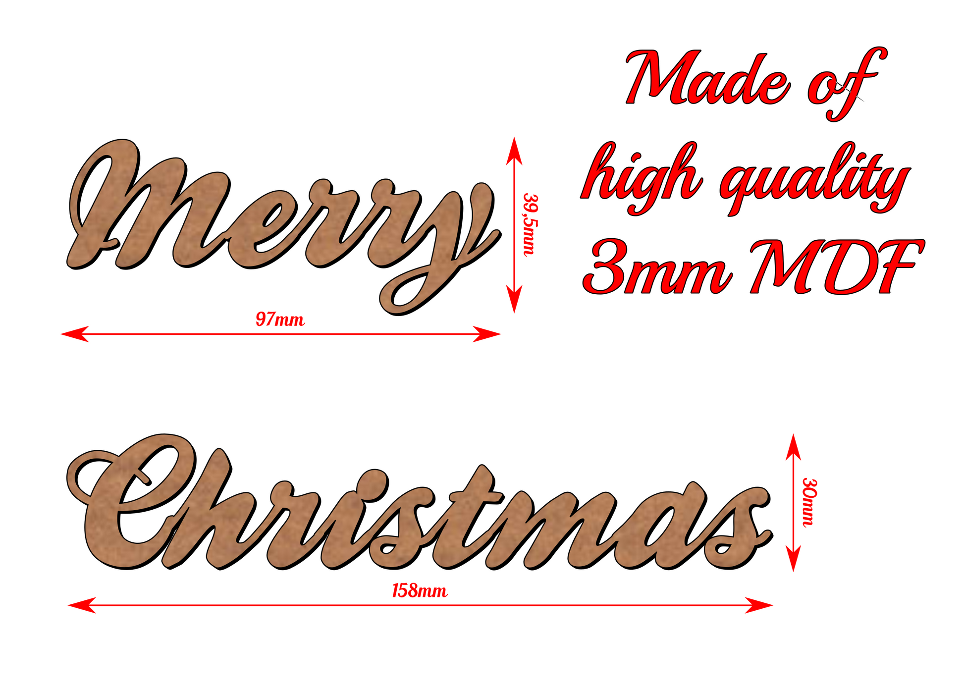 Merry Christmas Wooden Word Inscription - 3mm MDF - v2