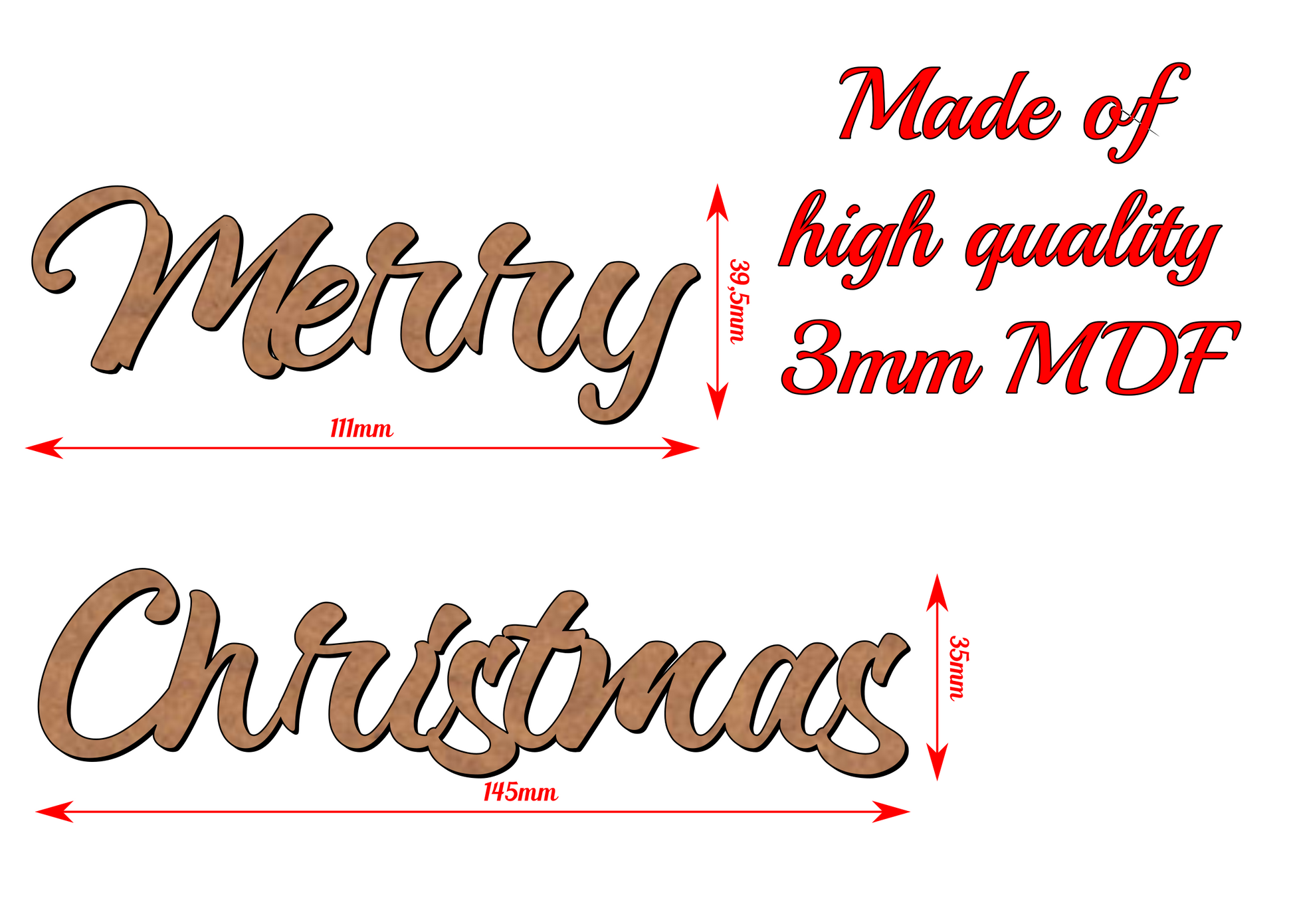 Merry Christmas Wooden Word Inscription - 3mm MDF - v3